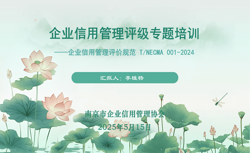 为推进信用体系建设标准化进程,助力企业提升信用管理能力,南京市企业信用管理协会于2025年5月15日成功举办“企业信用管理评级专题培训”。